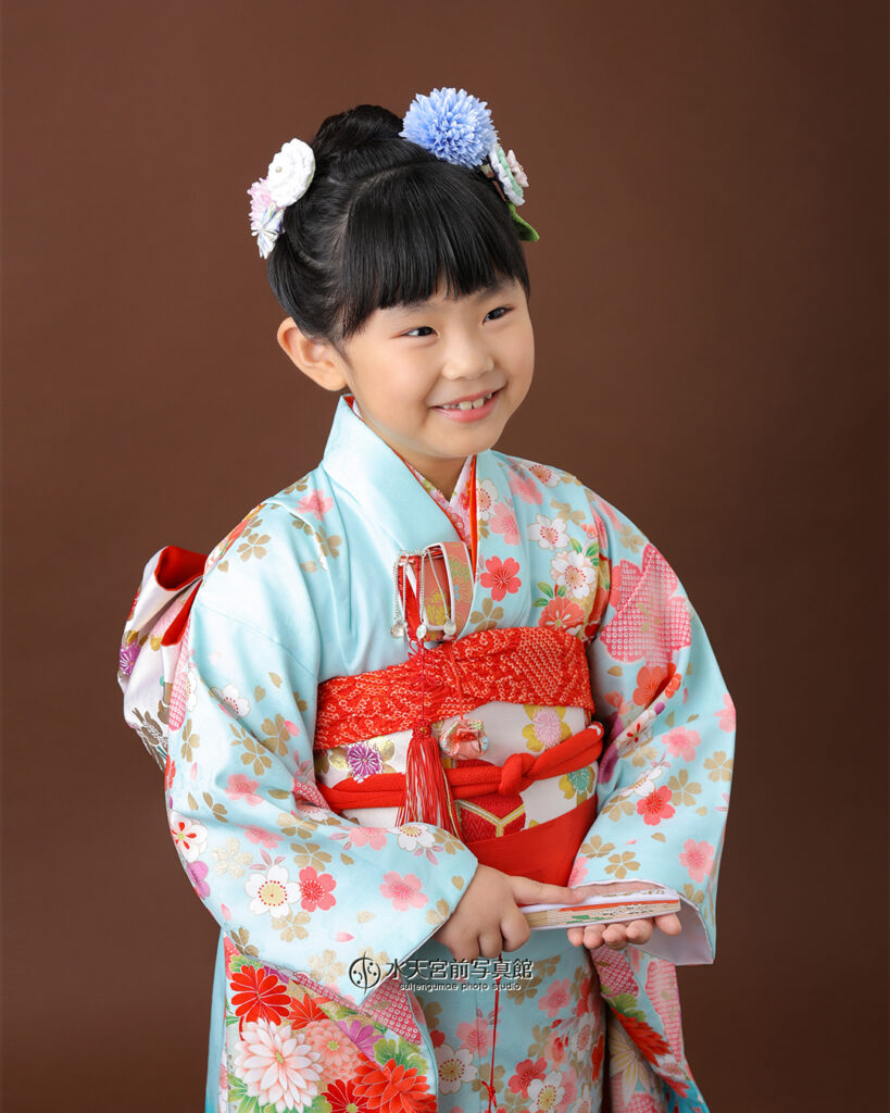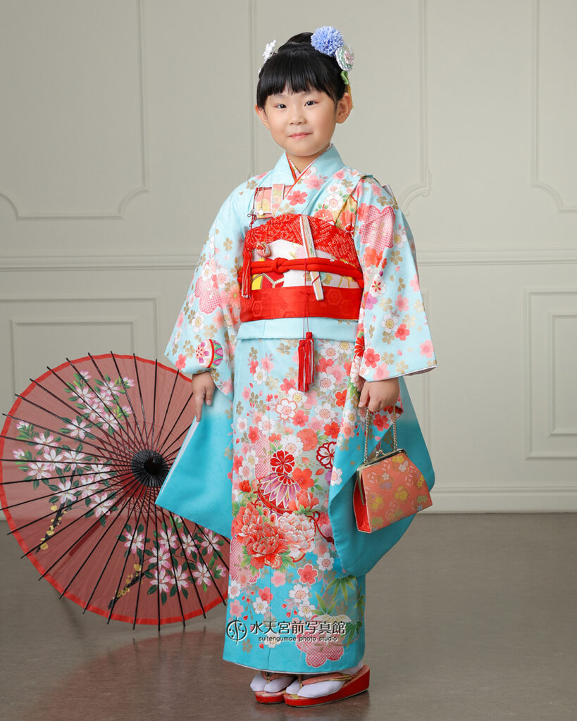 今日は、水色のお着物姿で可愛らしく佇むお嬢さまの
