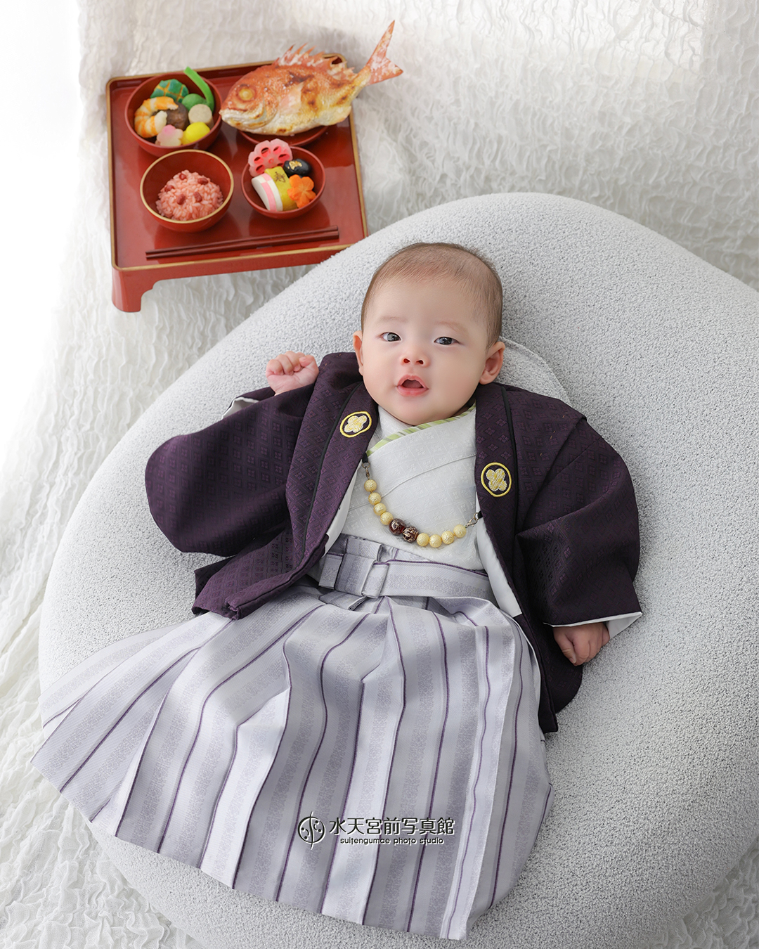 またこの日は、百日の袴のお衣装とお宮参りの御祝着の両方をお召しいただきました!
