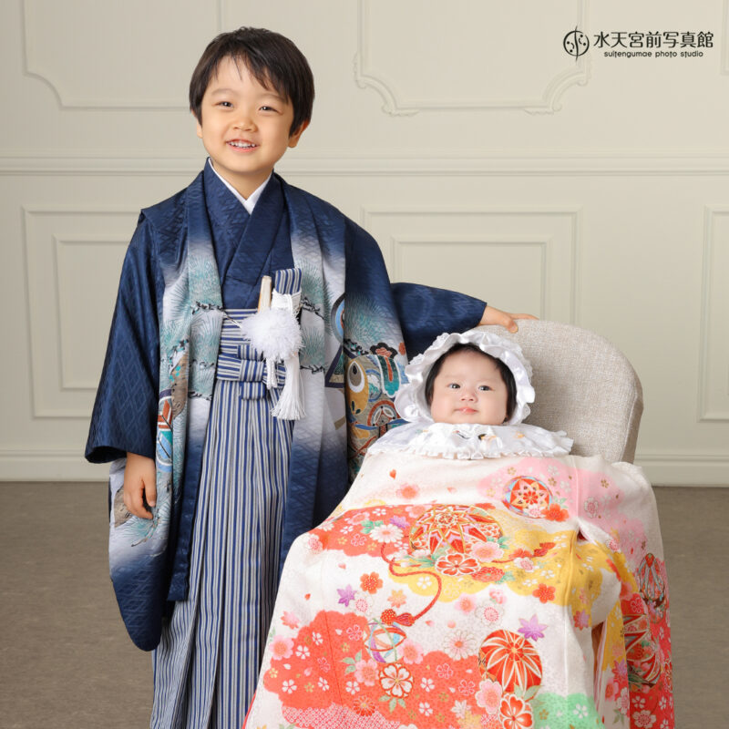 ご兄妹揃っての大切な記念撮影❁初宮参りと七五三おめでとうございます!