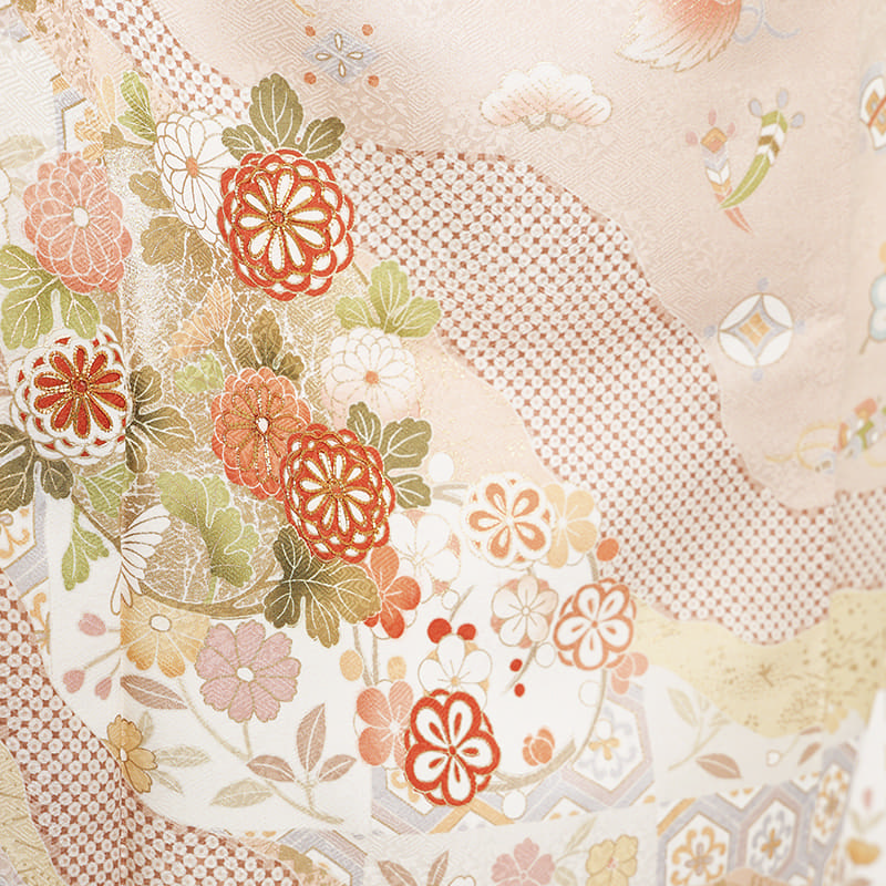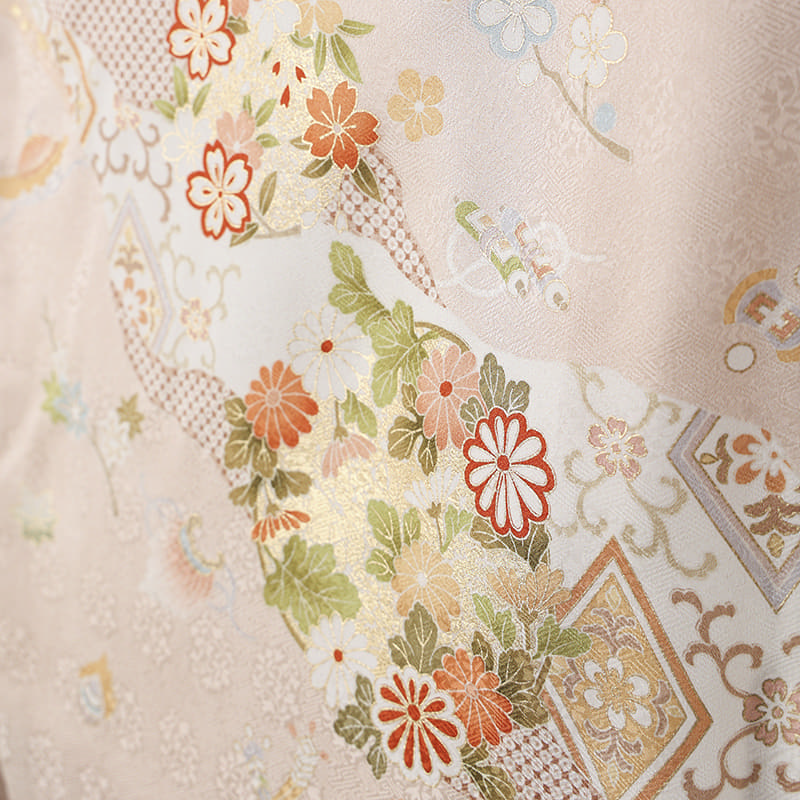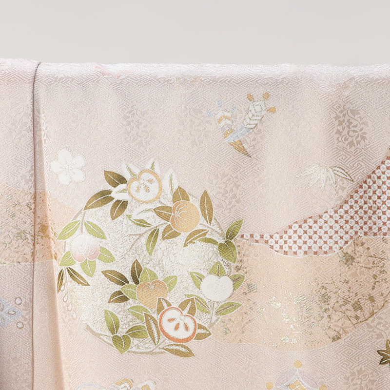 0001番より少し明るいピンクのお色味の地に桜や橘など。
